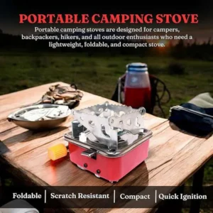 If you’re looking for something that’s ultra-light, compact, easy to use, and stylish, this Red & Silver Portable Camping Gas Stove might just be your new favorite travel companion.